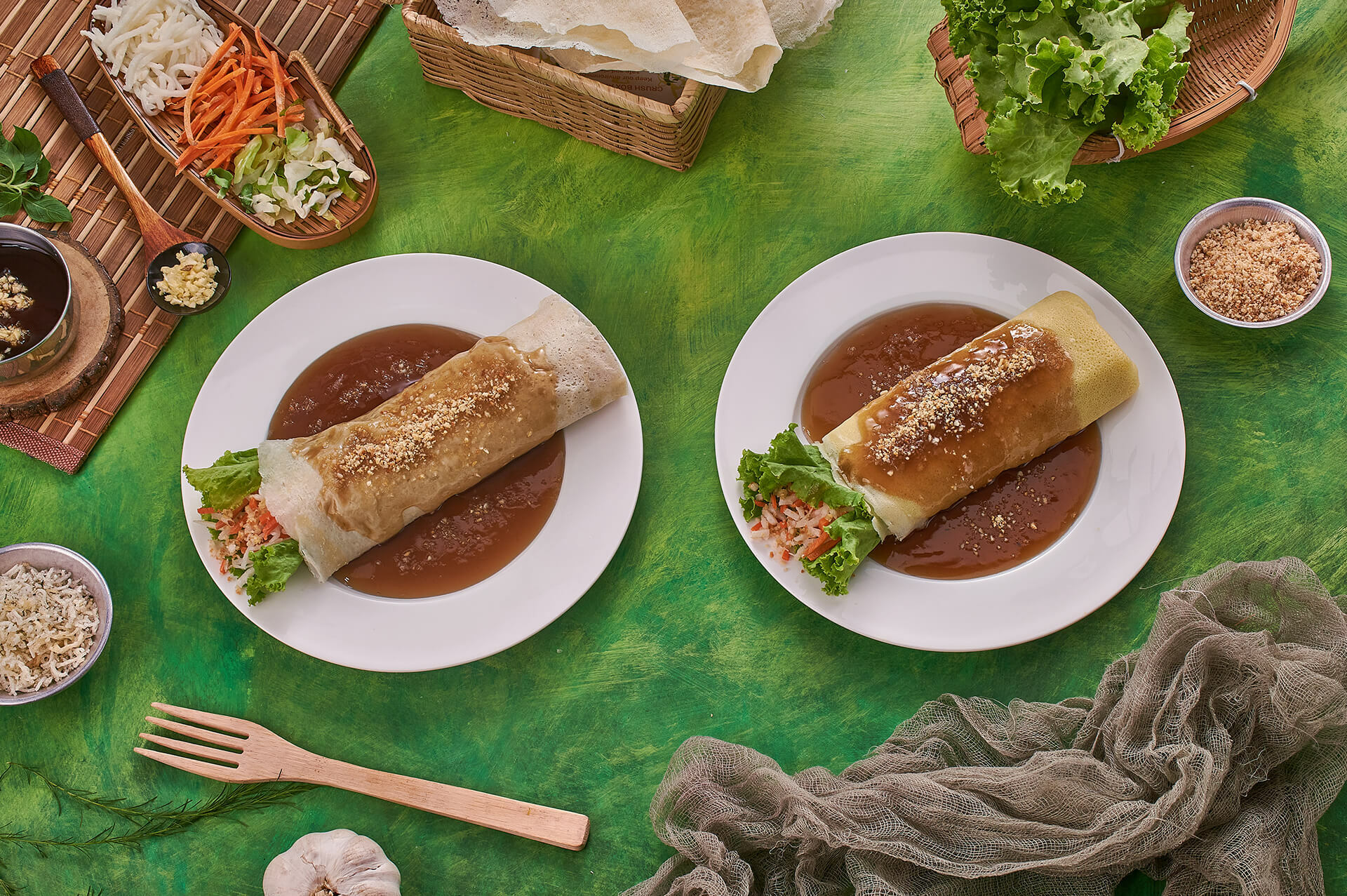 At the same time, the need to offer something “Filipino” and uniquely different from a Chinese spring roll persisted. Hence, the idea of an all-vegetable “Fresh lumpia” with the option of an egg wrapper roll, freshly cooked on site, came to life.